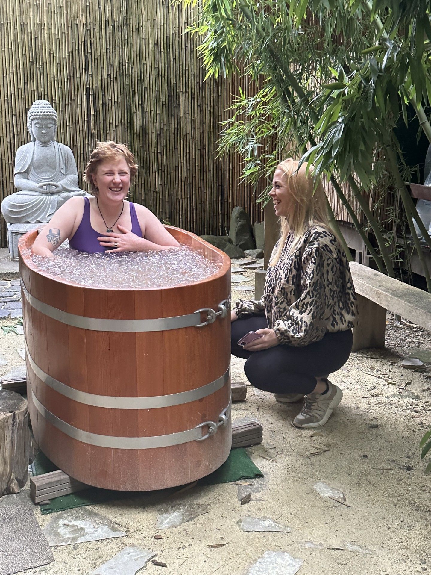 Tijdens het ijsbad begeleiden wij je persoonlijk vanuit veiligheid, zachtheid en kracht. We helpen je om rustig te blijven ademen en aanwezig te blijven in het moment. - Afronding